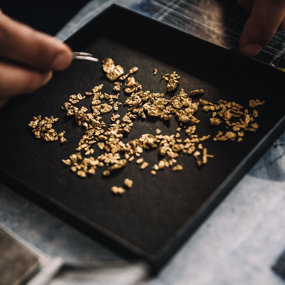 Noch heute zieht es mich mit wechselndem Erfolg nach Ivalo. Das Lappland-Gold das wir ausschließlich von Hand und ohne dem Einsatz von Chemikalien aus der eigenen Mine über Tage schürfen, wird in unserer Goldschmiede-Werkstatt unweit von Rosenheim zu einzigartigem Schmuck verarbeitet. In unserem MAMMA BAVARIA Schauraum können die gefundenen, einzigartigen Goldnuggets angeschaut und ausgewählt werden, die dann von uns zu individuellen Schmuckstücken gearbeitet werden. Somit ist jedes Schmuckstück, dass unsere Werkstatt verlässt ein echtes Unikat.